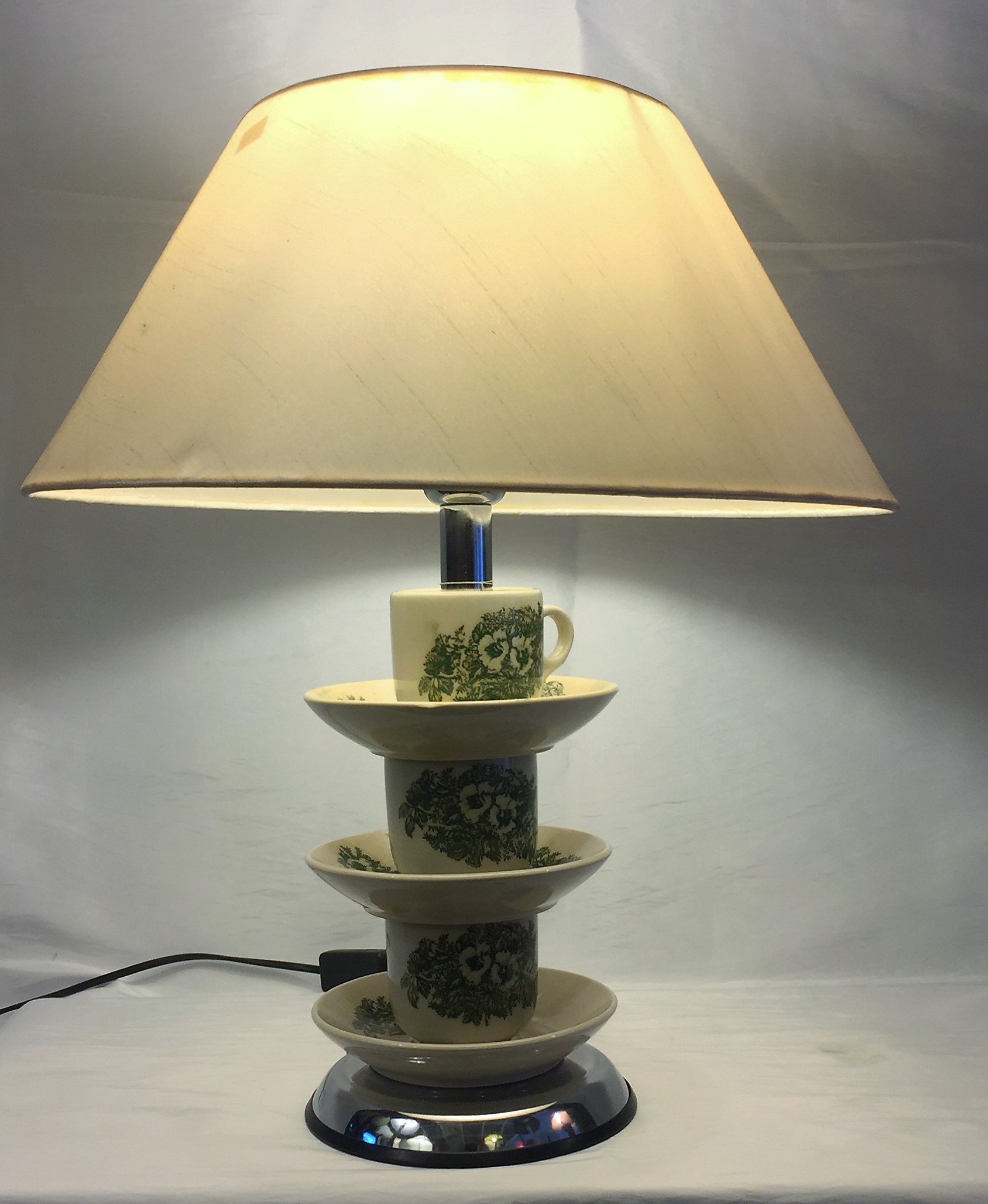 Just bring us any thing, whether it is a beloved musical instrument, a cup, a glass, a fine vase, or a keepsake champagne bottle, bring in your object and we will make it into a lamp!
