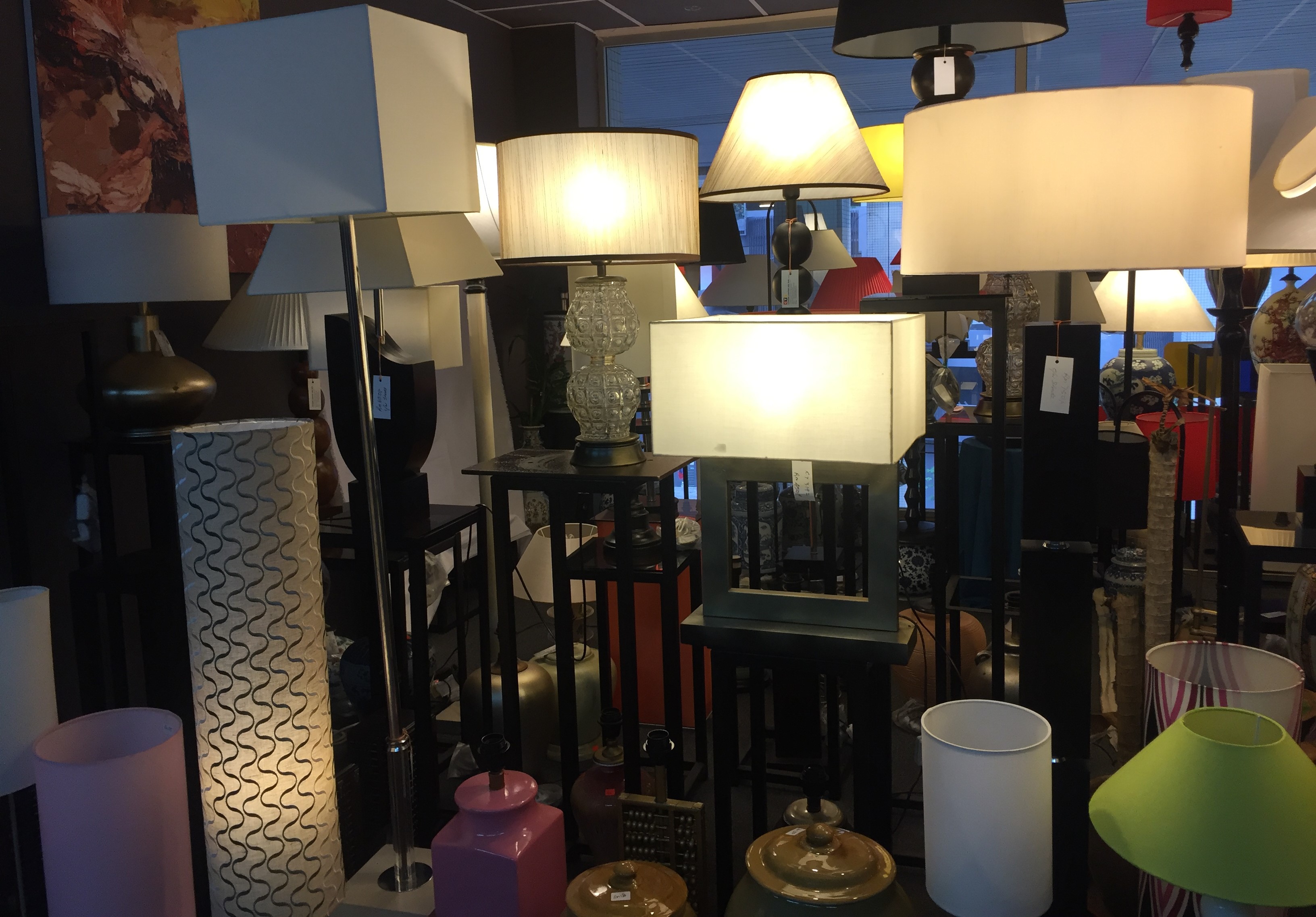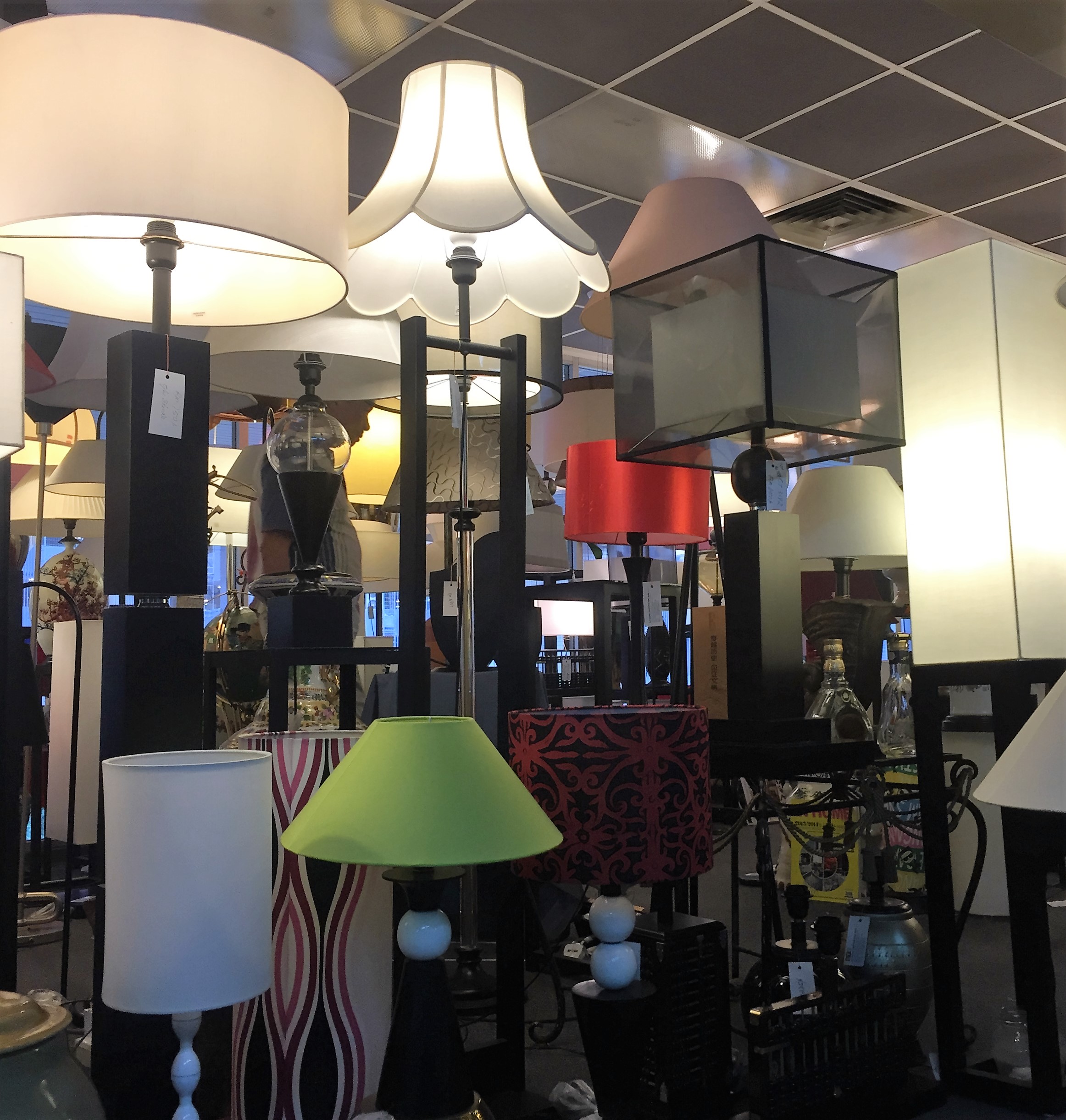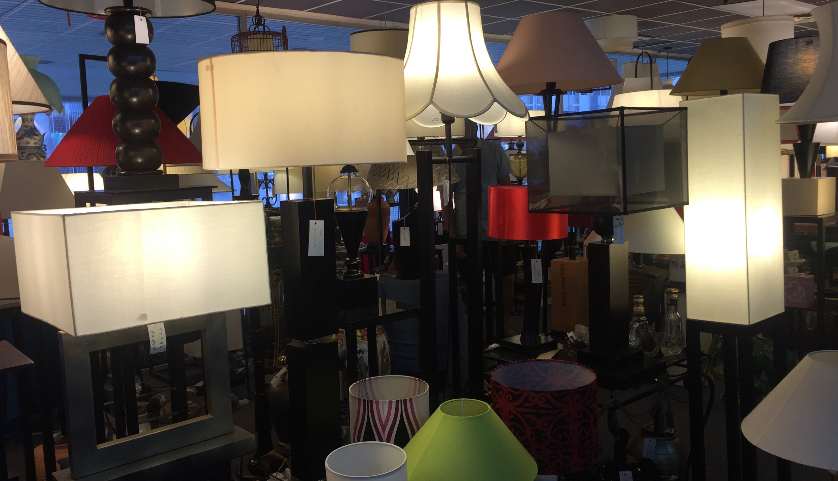 Visit our show room. We have the largest selection of lampshades and table lamps (custom made).