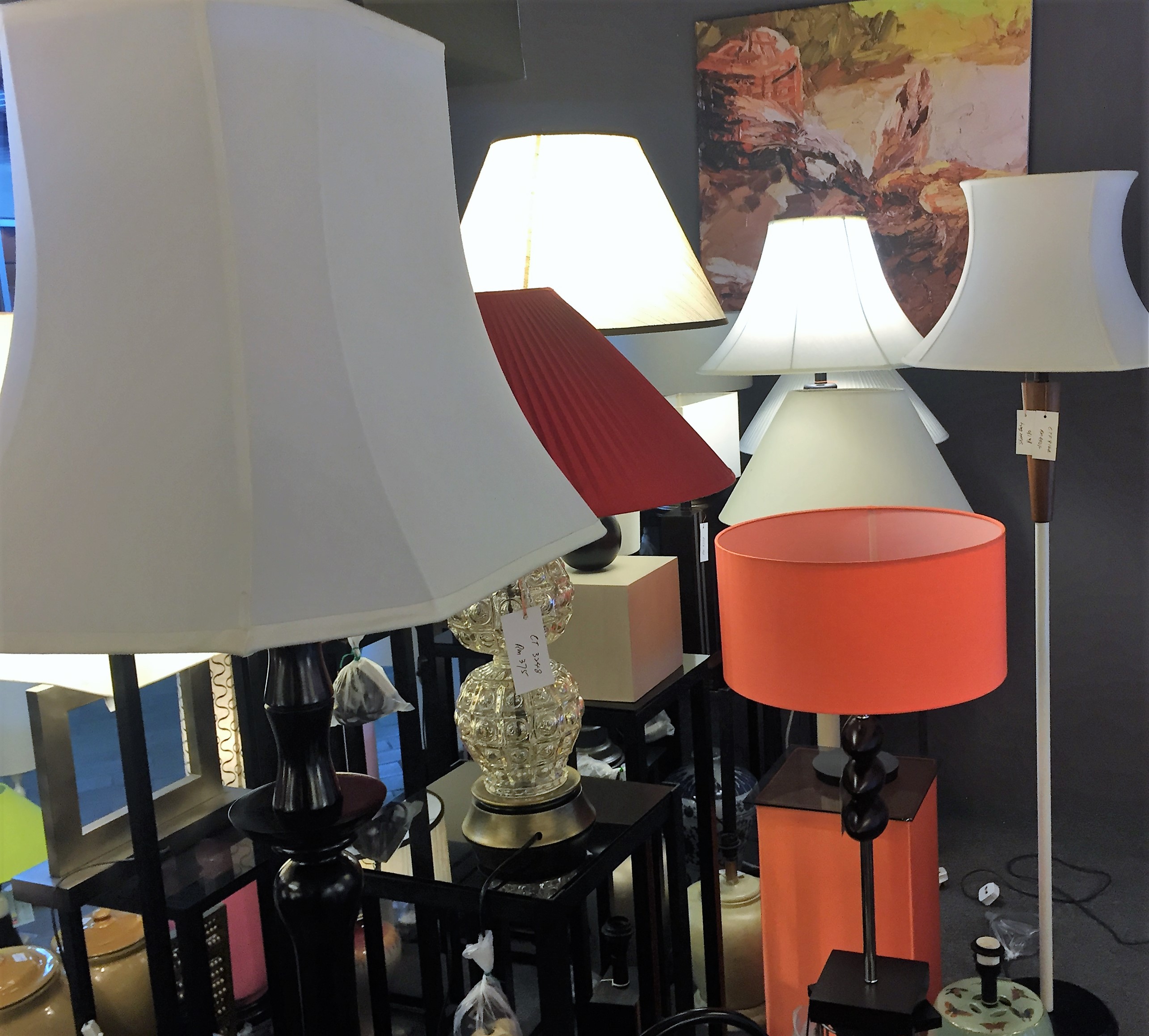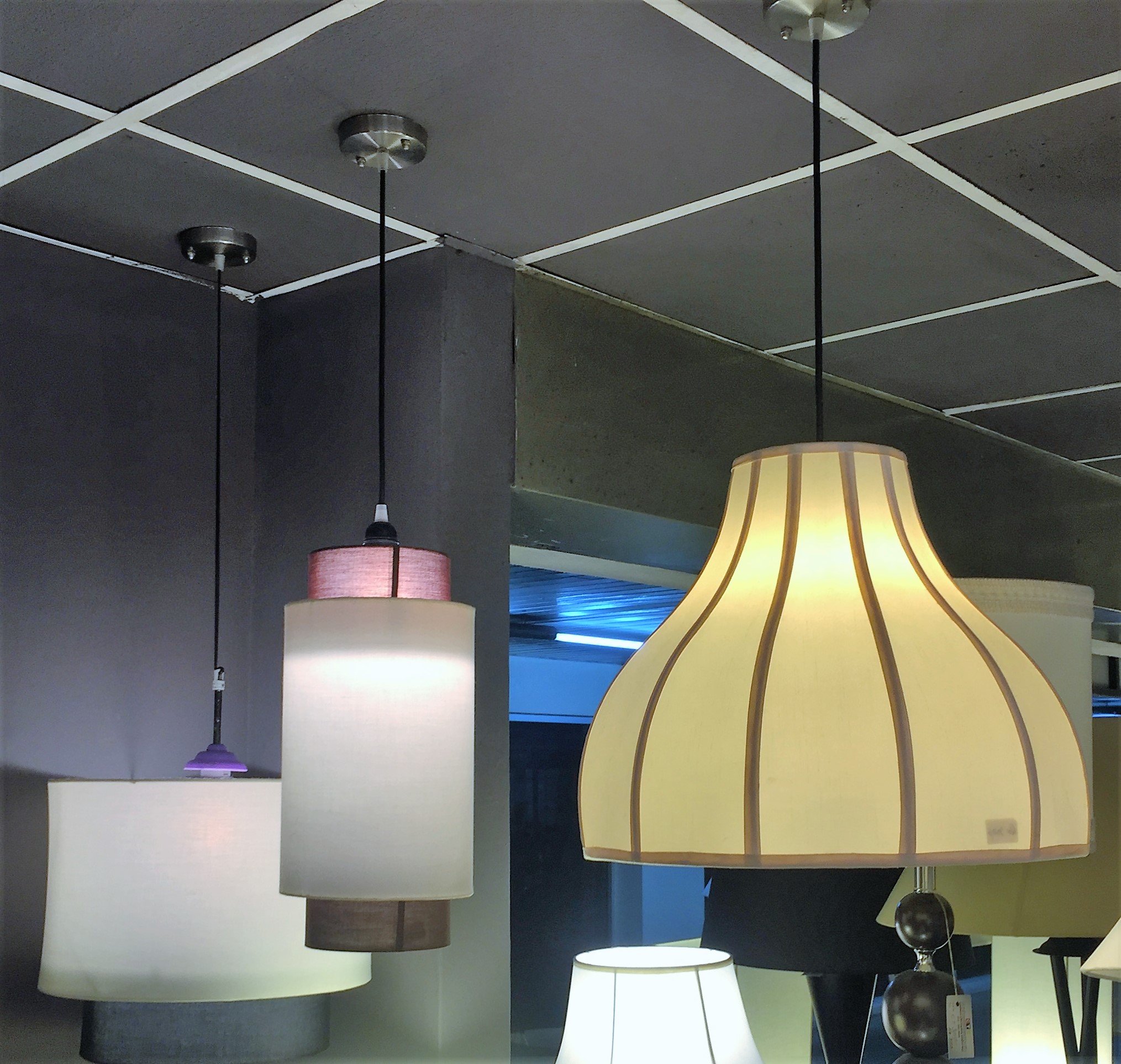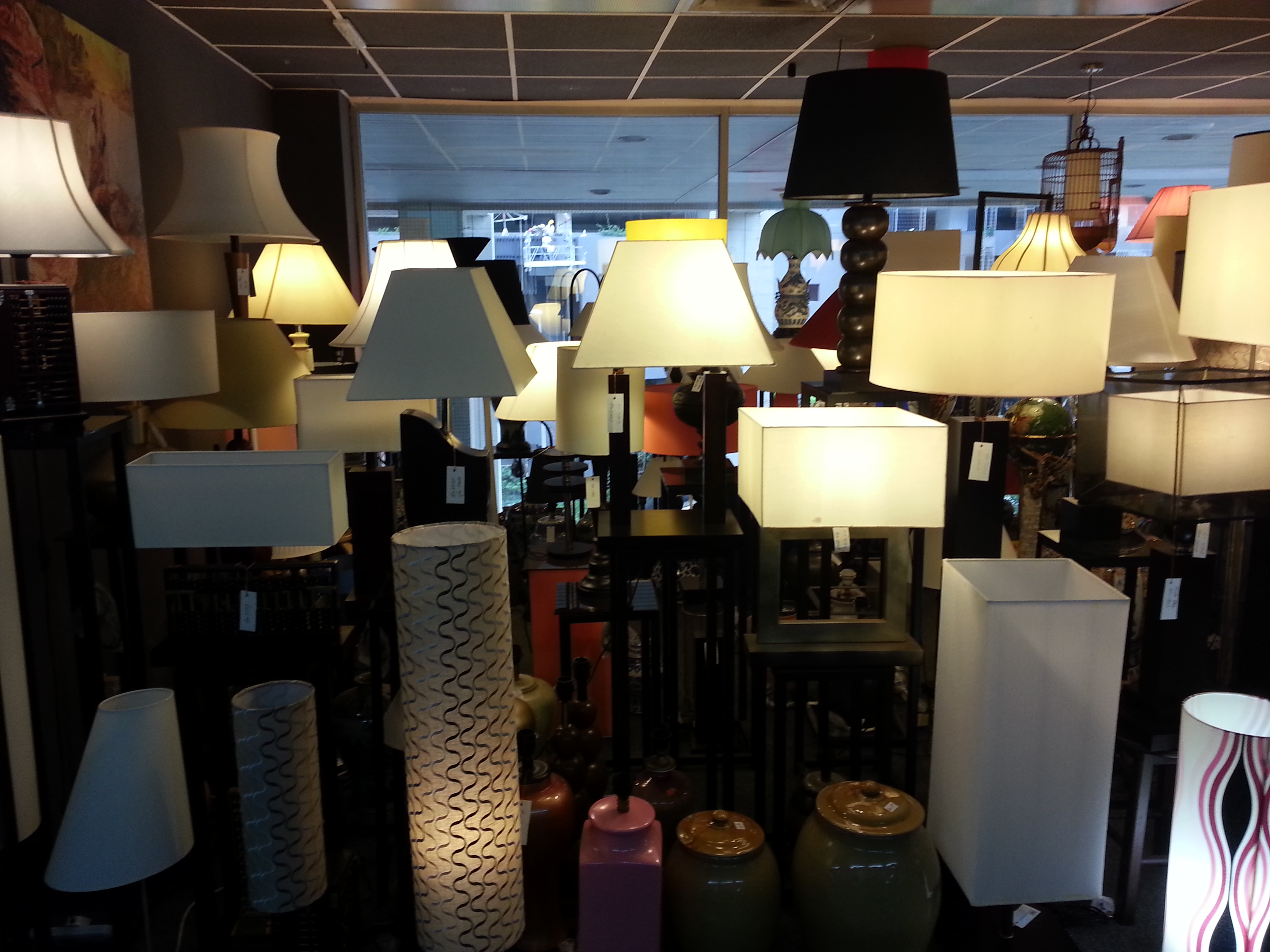 Visit our show room. We have the largest selection of lampshades and table lamps (custom made).